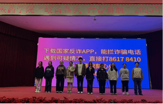 小品《迎新反诈联盟》(负责人:冯祉睿):以校园常见诈骗场景为创作蓝本,幽默桥段搭配接地气的台词,演员们生动鲜活的演绎让全场捧腹。笑声背后暗藏实用反诈知识,从刷单陷阱到校园贷风险,于潜移默化中提升了新生的安全防范意识,实现了娱乐性与科普性的巧妙结合。