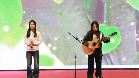 吉他弹唱《春风十里》(负责人:潘春雨、姜克宁):以轻柔吉他旋律开篇,两人默契合唱裹挟着对校园的温柔告白。歌声里藏着林荫道的清风、初遇的美好,舒缓旋律让现场氛围愈发温馨,唤起师生对校园时光的共同眷恋。